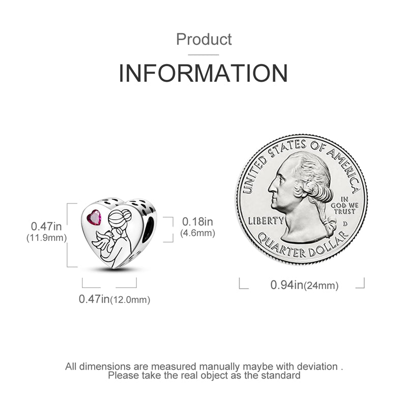 💎 This beautiful heart-shaped silver bead expresses deep maternal love and tenderness. The delicate motif of a mother hugging her child is complemented by a red heart-shaped zircon, which gives the jewelry an emotional touch and elegance. This jewelry is a perfect symbol of the bond between mother and child.