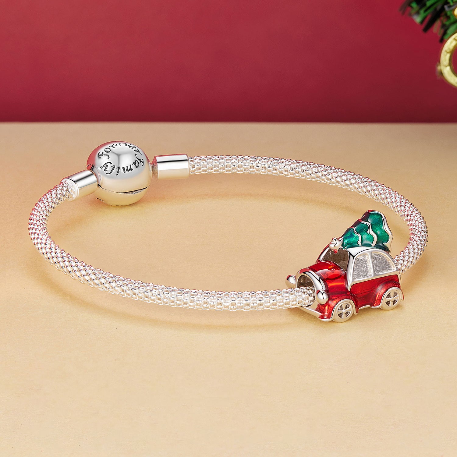 'Christmas Car' - a playful and festive piece of jewelry that captures a joyful moment. The car with a Christmas tree attached to the roof symbolizes the magic of Christmas preparations, family comfort and the warmth of home. A perfect accessory for your bracelet that will bring a smile and festive charm to every day.