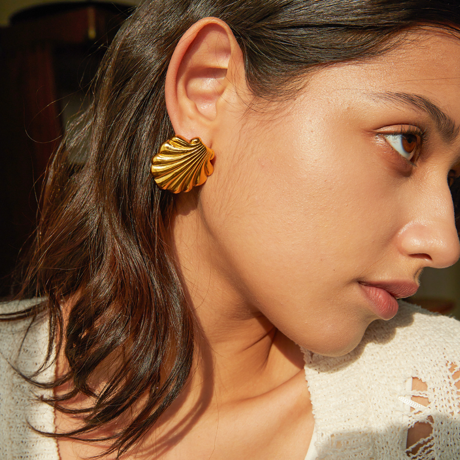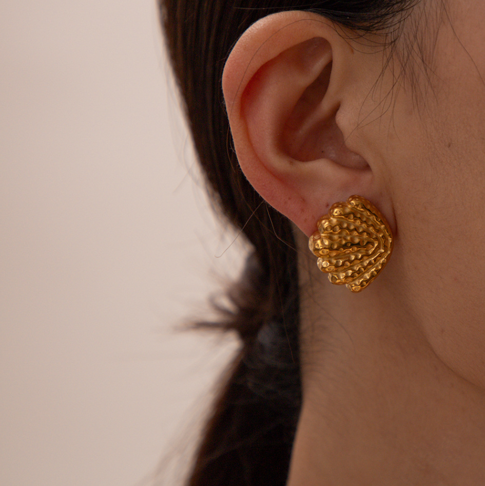 Kolczyki „Pearl Shell” – elegancka biżuteria w kształcie muszli, zaprojektowana tak, aby delikatnie otulać perłę. Te kolczyki ucieleśniają piękno morza i wyrafinowanie pereł, tworząc idealny dodatek dla miłośników naturalnej elegancji. Idealne na specjalne okazje lub jako wyjątkowy prezent.