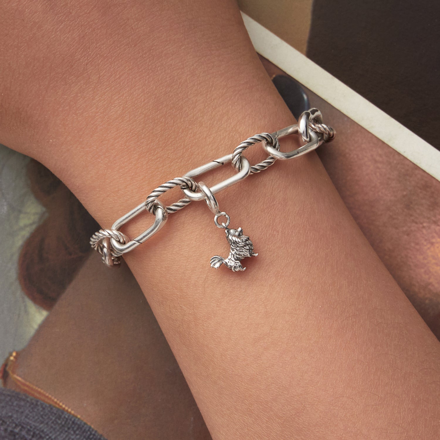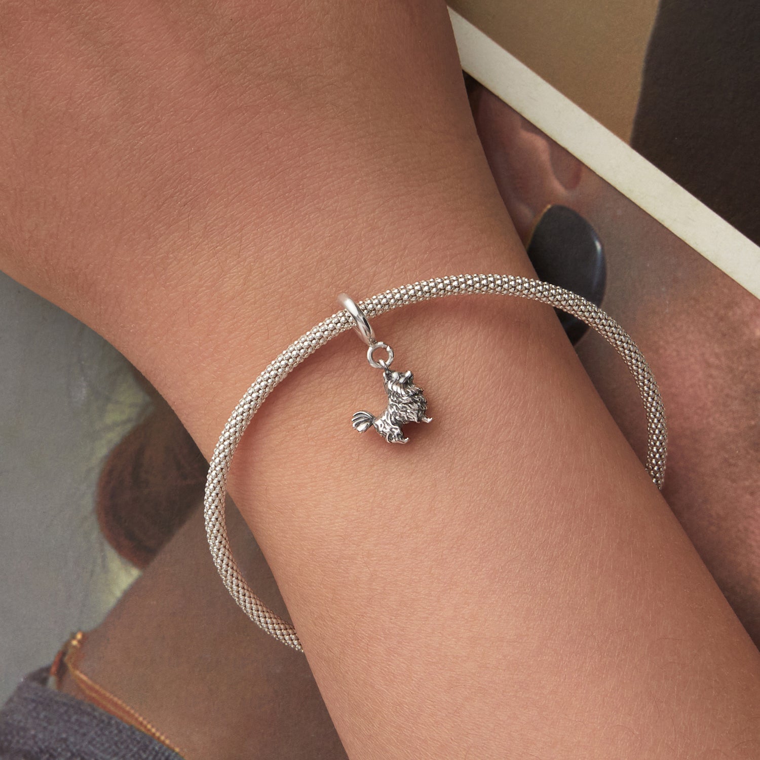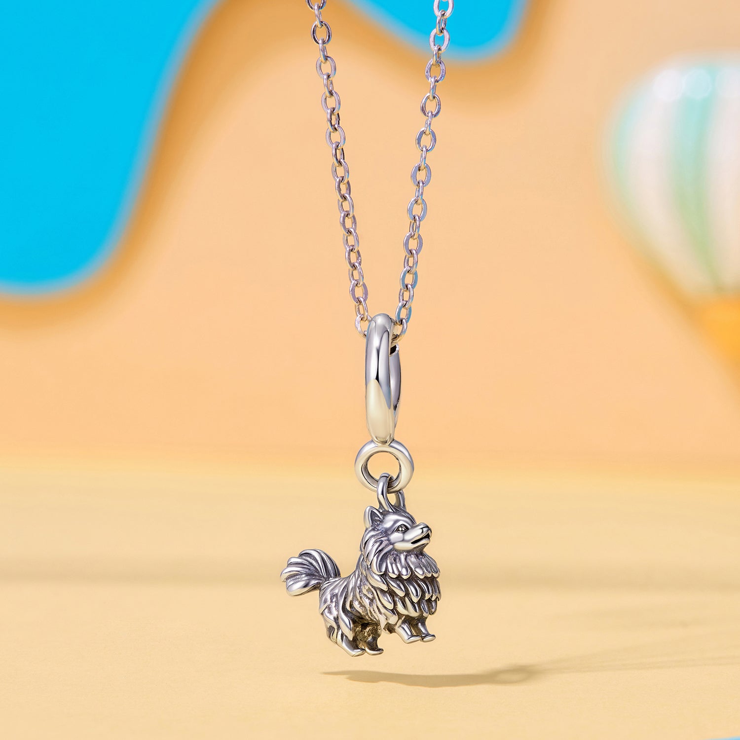 Szczegółowa srebrna zawieszka w kształcie psa z kudłatym futerkiem. Ten uroczy dodatek to idealny prezent dla miłośników psów i zwierząt domowych. Pasuje do bransoletek Pandora, łańcuszków lub breloków. Symbol lojalności, radości i przyjaźni.