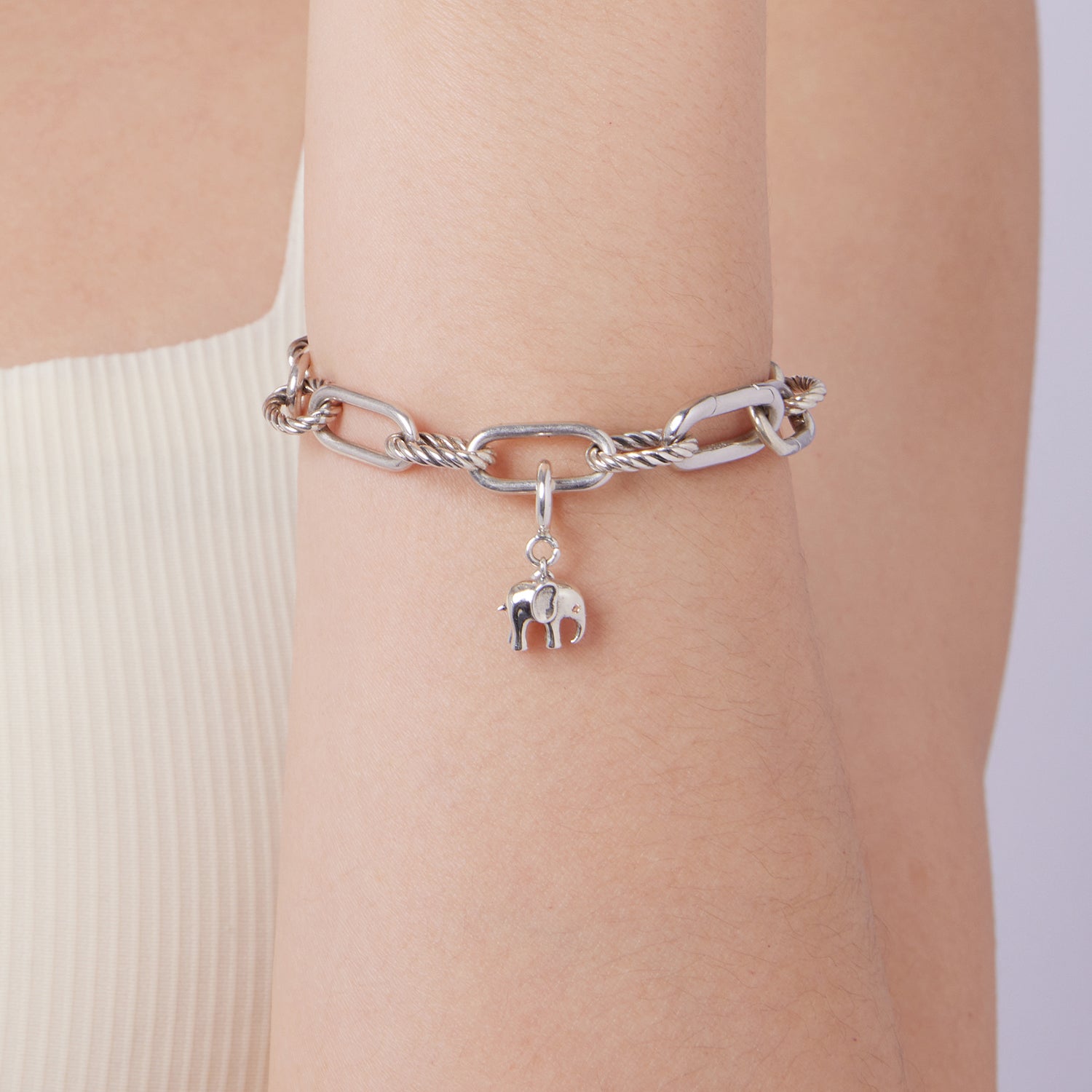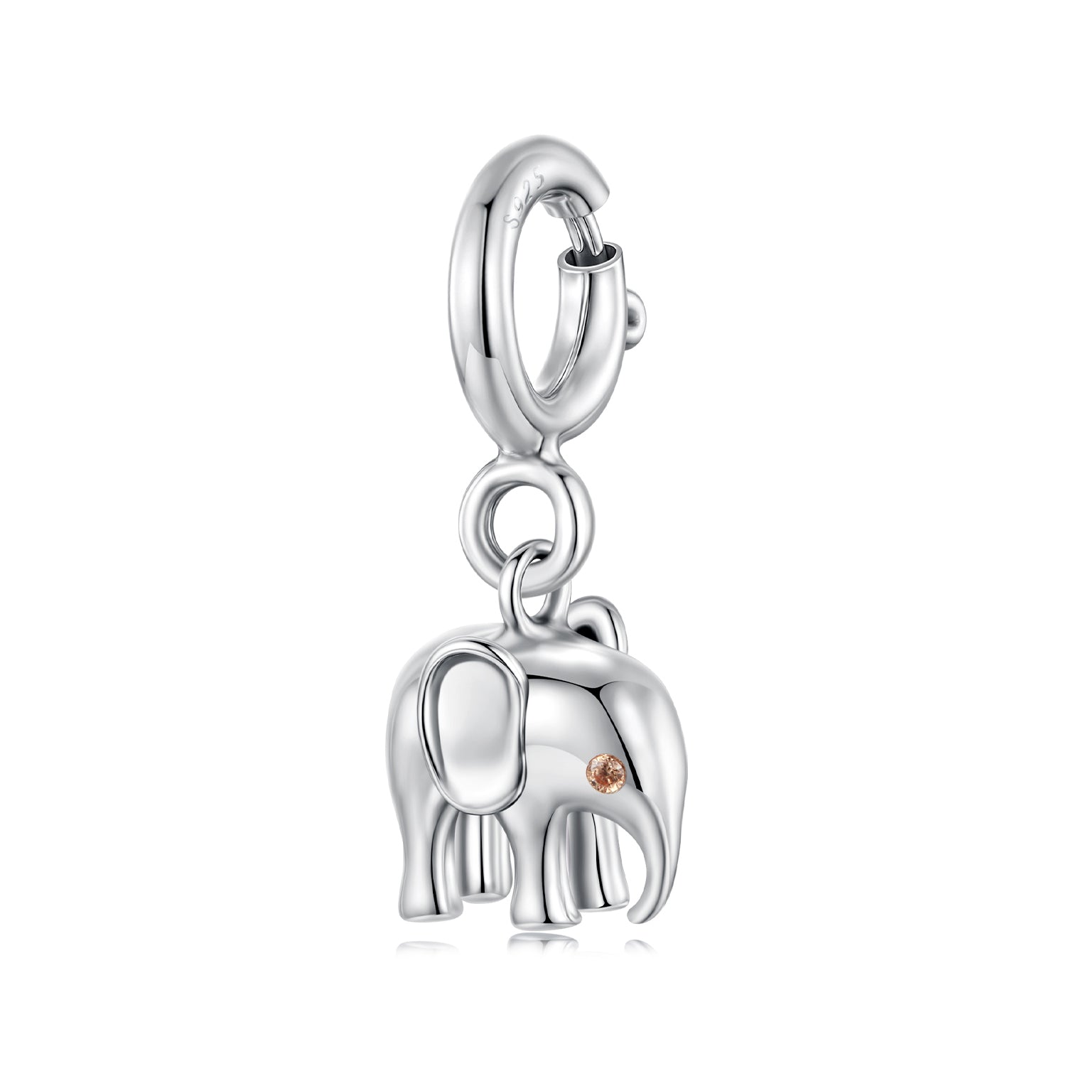 Srebrna zawieszka w kształcie słonia z delikatnym kryształowym okiem symbolizuje siłę, mądrość i ochronę. Minimalistyczny i elegancki design nadaje się do noszenia na co dzień. Idealna jako talizman na szczęście lub miły prezent dla kogoś wyjątkowego. Kompatybilna z bransoletkami, łańcuszkami i brelokami Pandora.