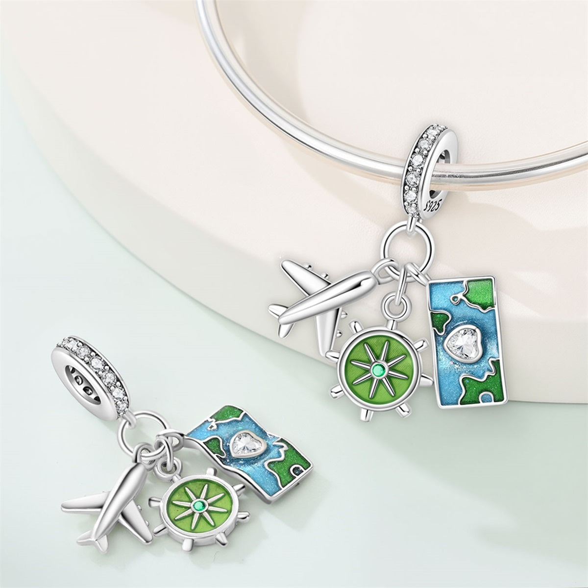 Originálny prívesok s cestovateľskými motívmi je ako stvorený pre milovníkov objavovania sveta. Kombinácia lietadla, kompasu a mapy symbolizuje túžbu po dobrodružstve, nových miestach a nezabudnuteľných zážitkoch. Farebný smalt a trblietavé kamienky dodávajú šperku svieži a hravý vzhľad, ktorý krásne doplní každý cestovateľský príbeh na vašom náramku.