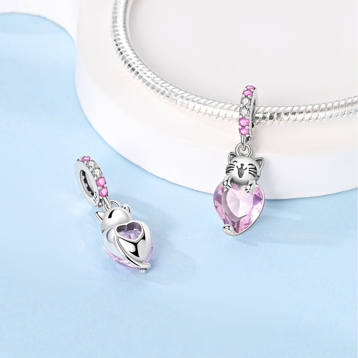 Ten uroczy wisiorek przedstawia radosną buzię kotka tulącego różowy kryształ w kształcie serca. Wisiorek emanuje radością i miłością, dzięki czemu jest idealnym dodatkiem dla miłośników kotów i elegancji.