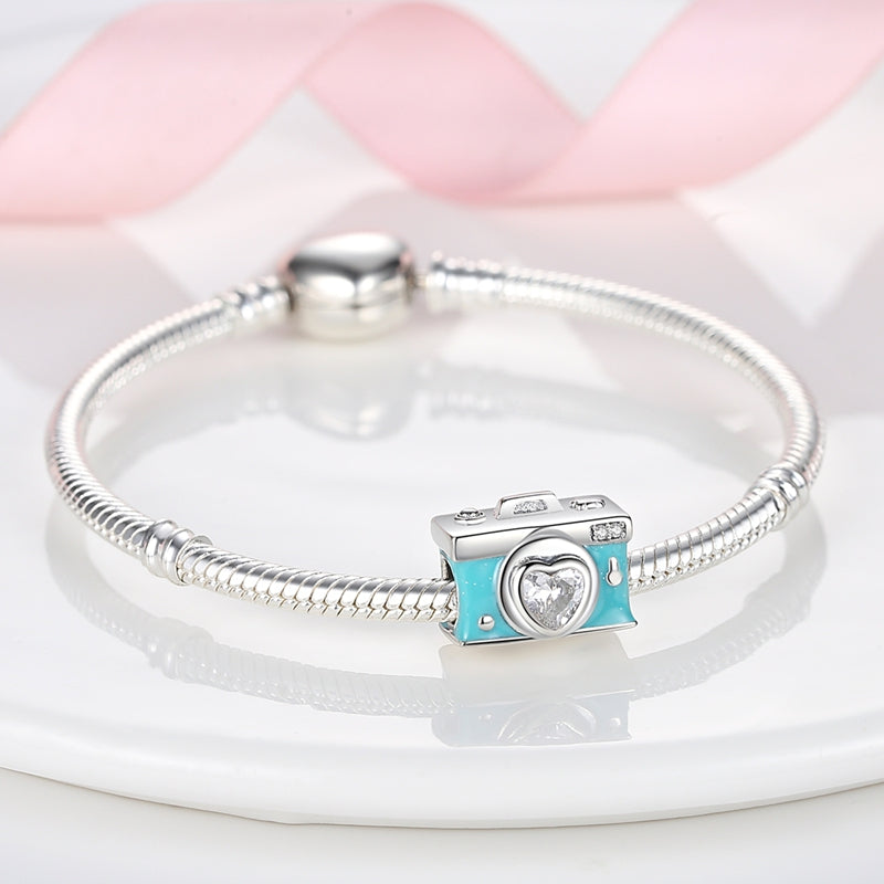 📷 Ten koralik w kształcie aparatu fotograficznego to idealny dodatek dla miłośników fotografii i podróży. Turkusowy odcień dodaje mu świeżości i figlarności, a kryształowe serce symbolizuje miłość do uwieczniania chwil. Koralik stanie się wyjątkowym dodatkiem do każdej bransoletki i będzie przypominał o pięknych wspomnieniach.