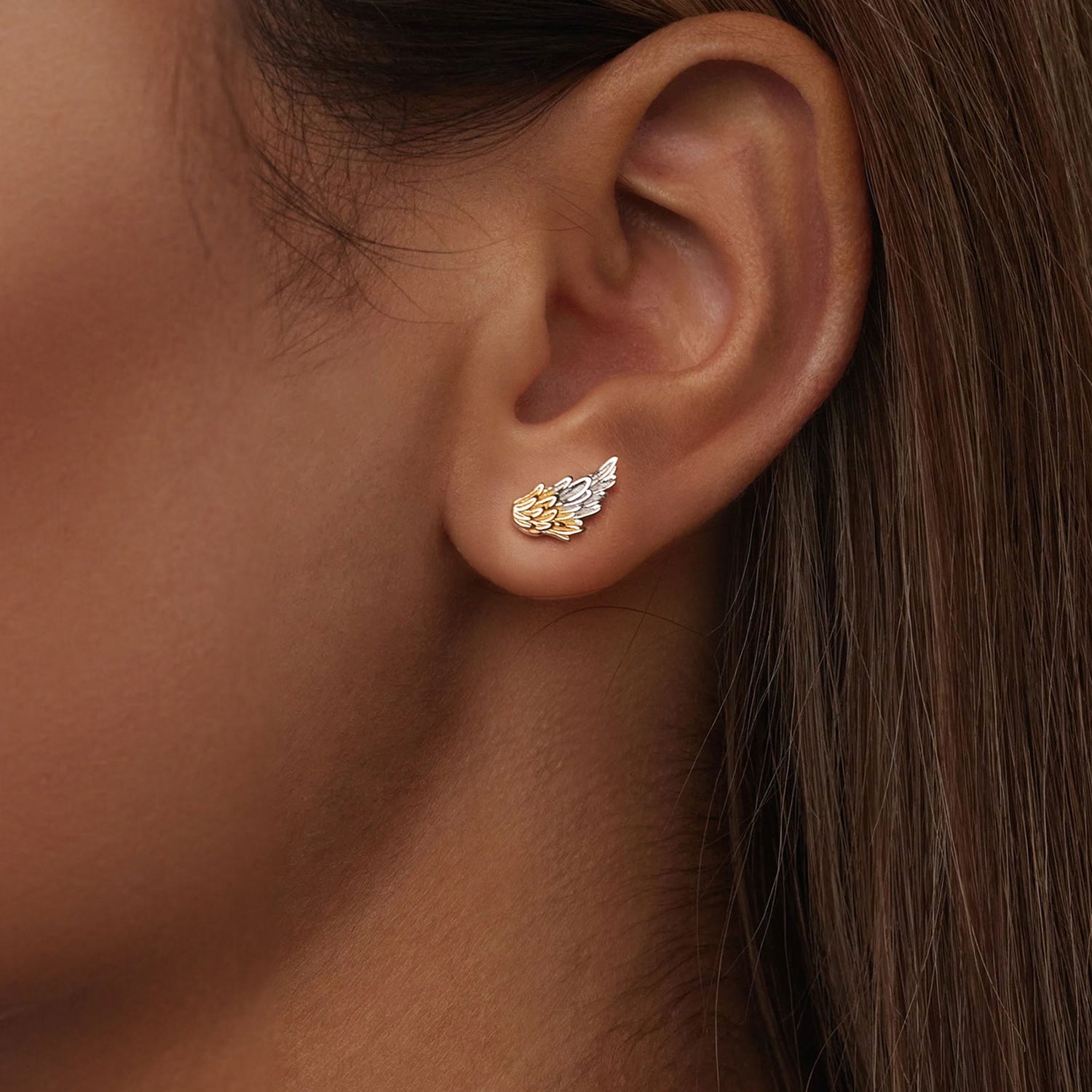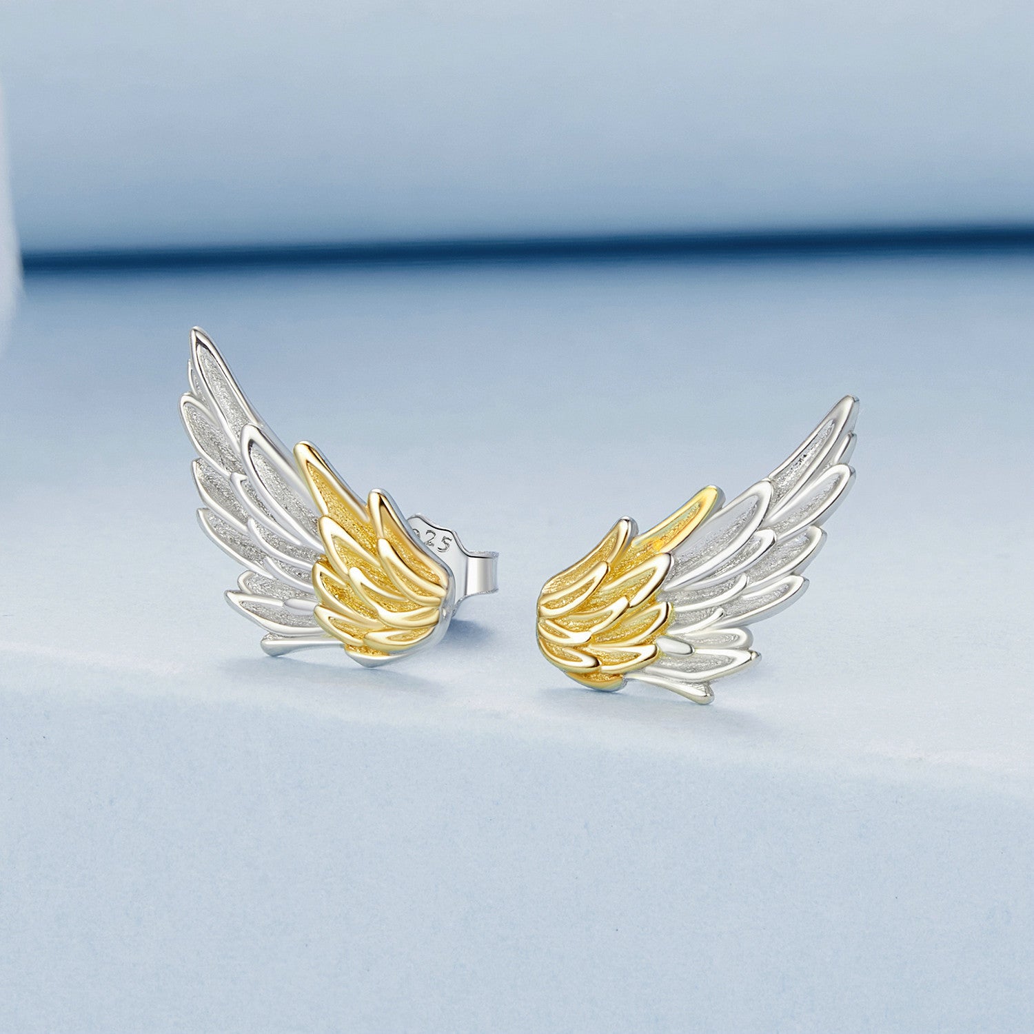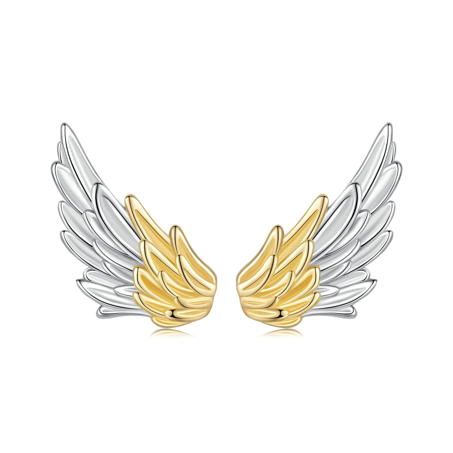 Eleganckie kolczyki z anielskim skrzydłem, łączące blask srebra próby 925 i złota. Ich delikatny i symboliczny design wyraża ochronę, wolność i piękno. Idealny dodatek na specjalne okazje i na co dzień.