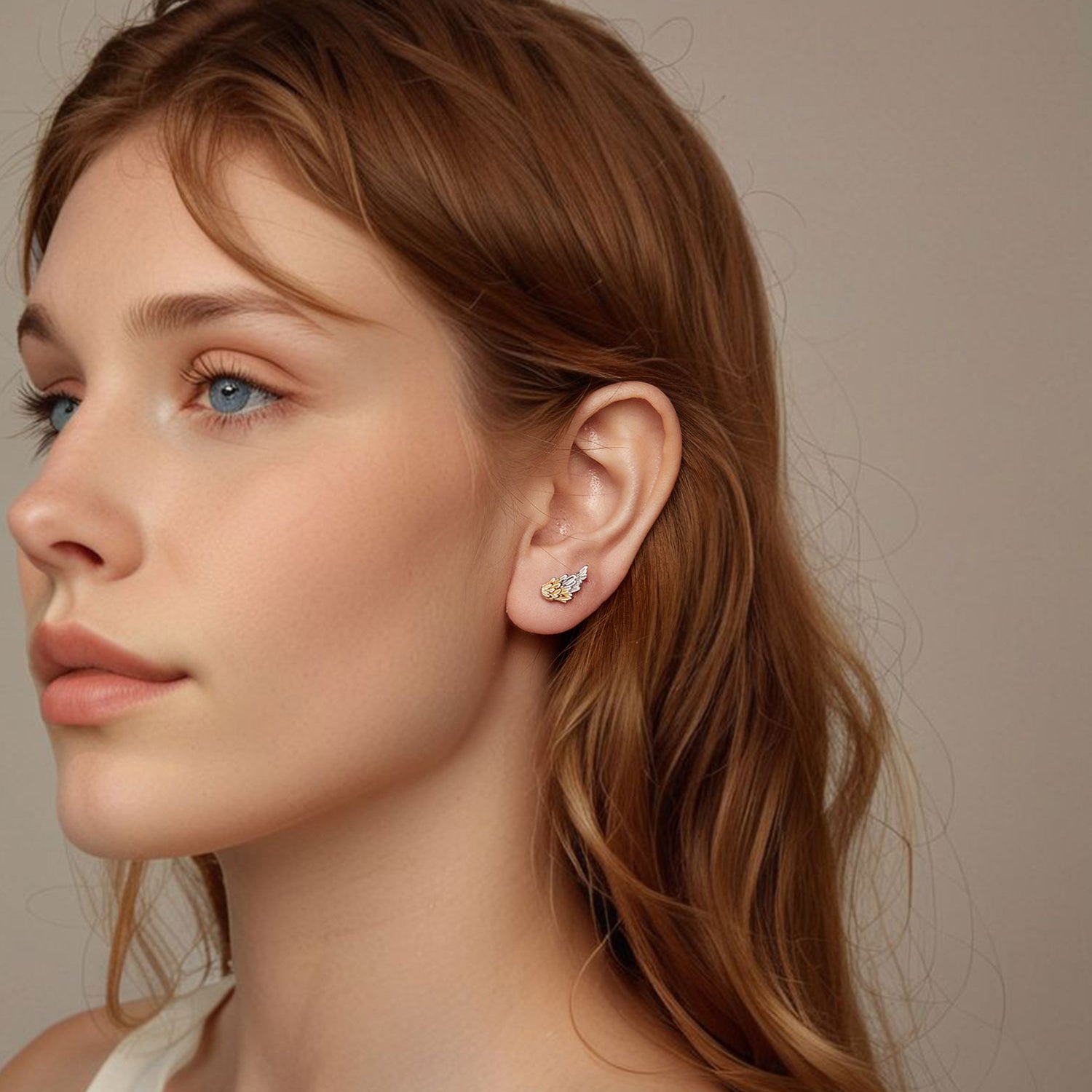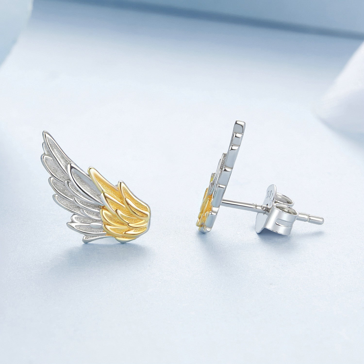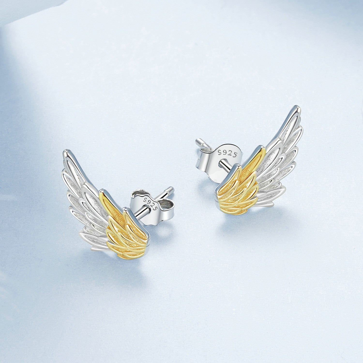 Eleganckie kolczyki z anielskim skrzydłem, łączące blask srebra próby 925 i złota. Ich delikatny i symboliczny design wyraża ochronę, wolność i piękno. Idealny dodatek na specjalne okazje i na co dzień.