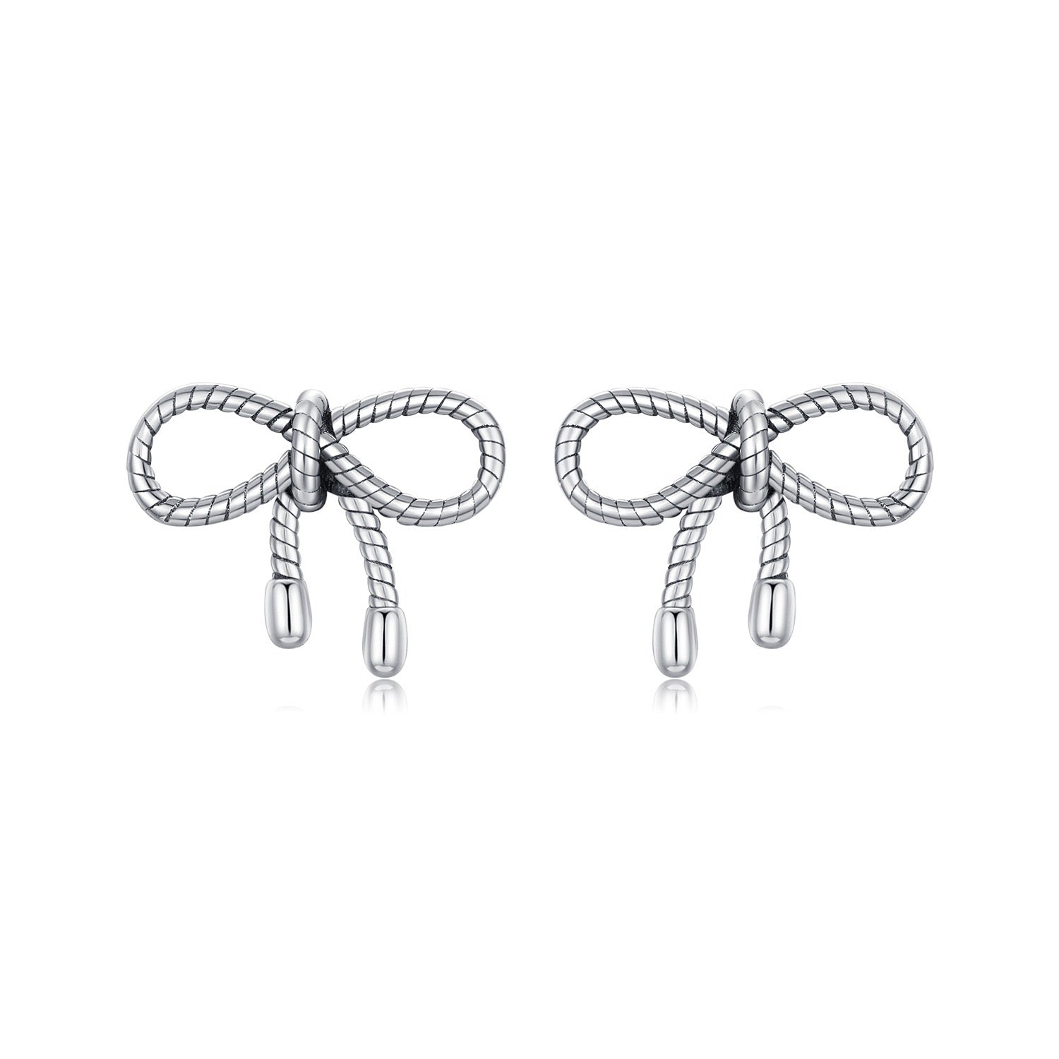 Elegantné strieborné náušnice v tvare jemnej mašle pôsobia hravo a zároveň štýlovo. Minimalistický dizajn zvýrazňuje ženskosť a ľahko doplní každodenný aj slávnostný outfit. Vyrobené zo striebra, vďaka čomu sú vhodné na pohodlné každodenné nosenie aj ako milý darček.