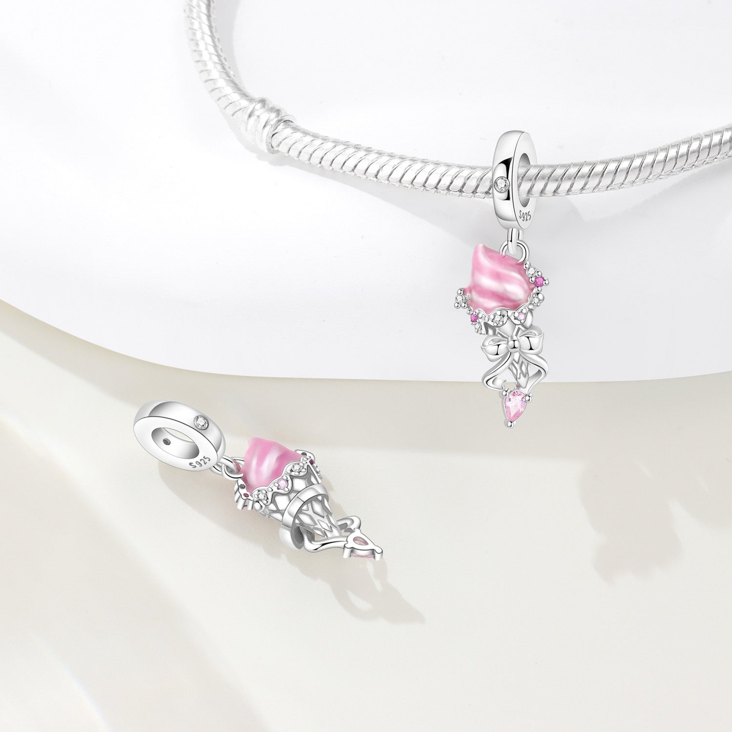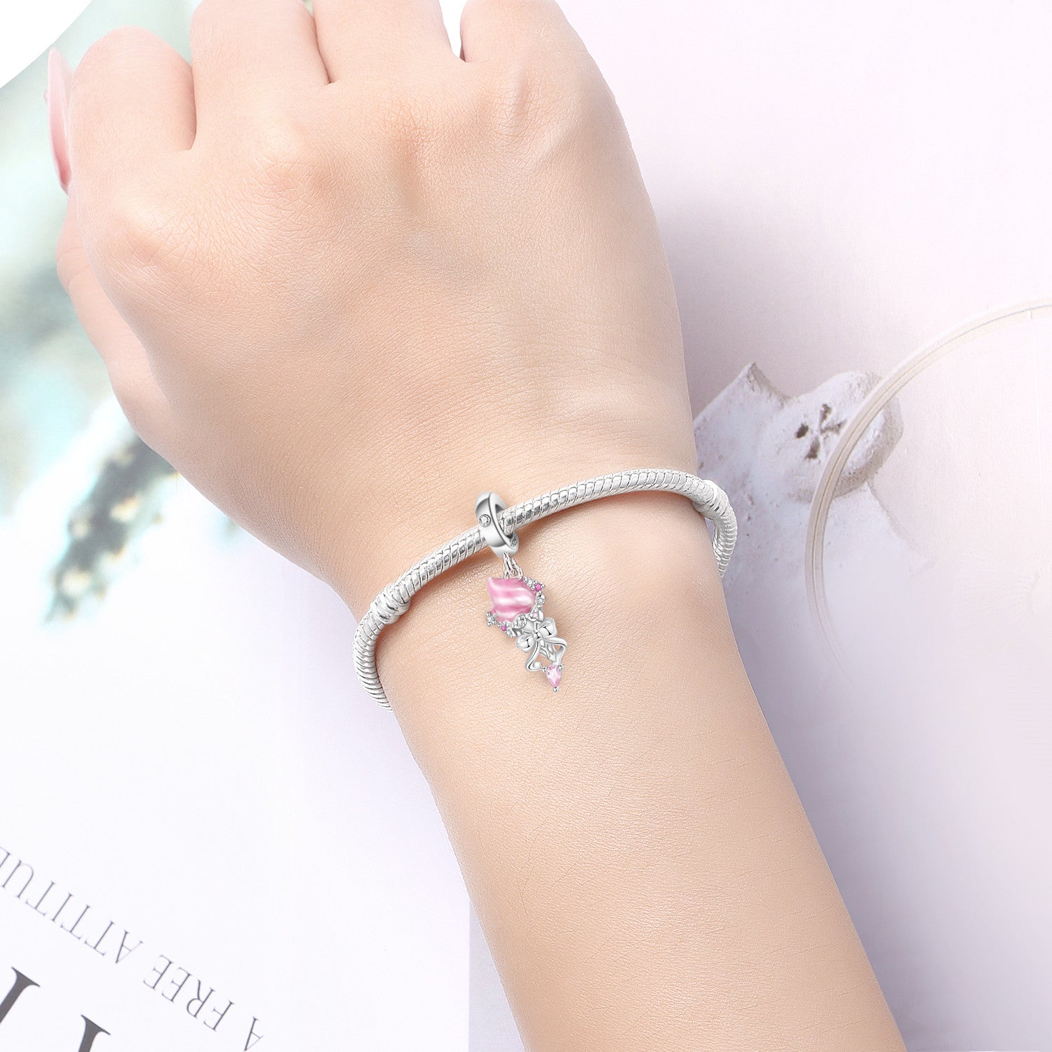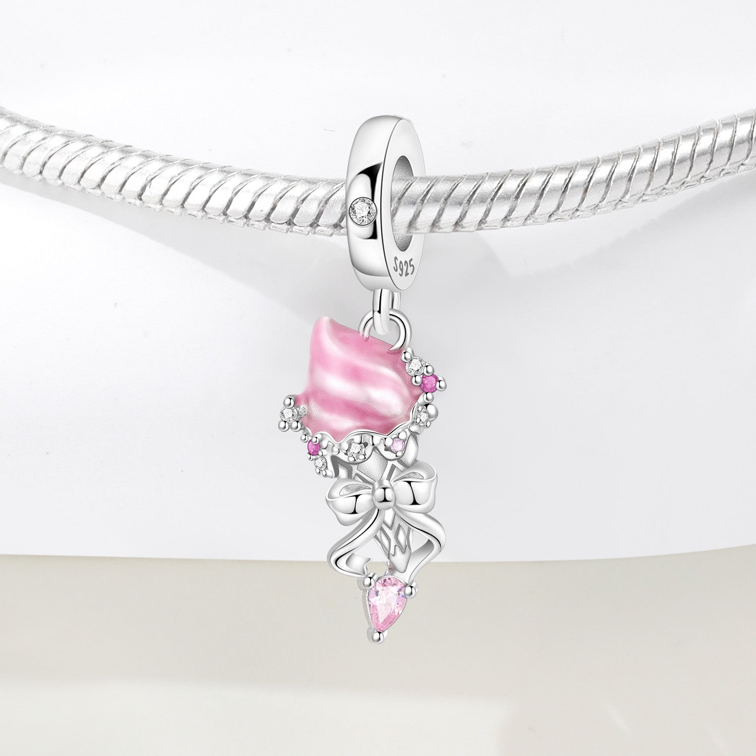 Jemný prívesok s ružovou mušľou, zdobený trblietavými kamienkami a elegantnou mašľou. Romantický detail, ktorý pripomína leto, more a nežné momenty.