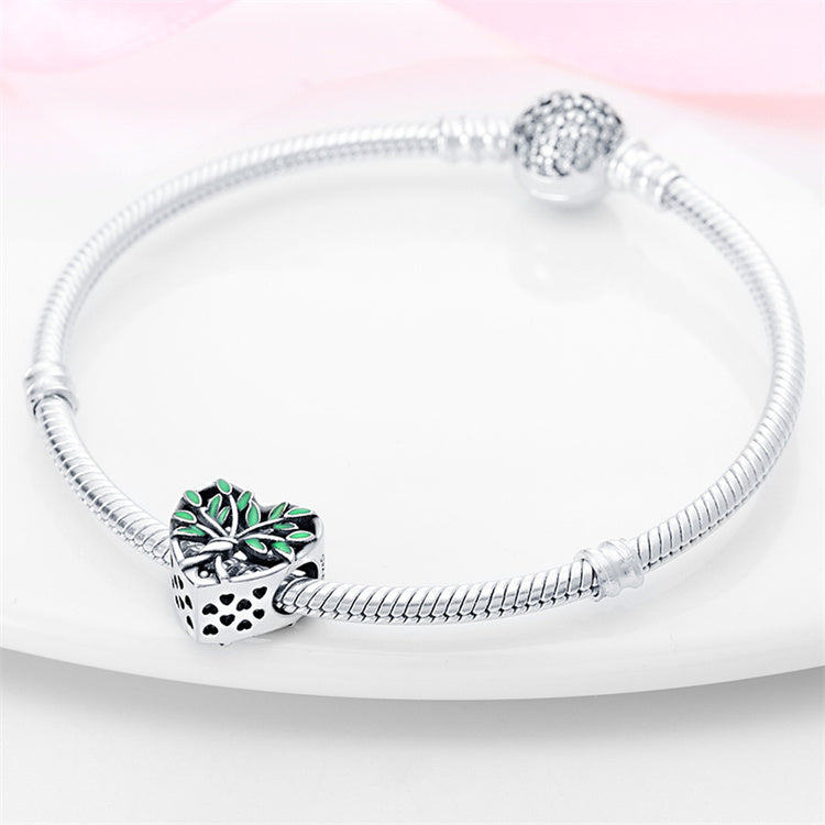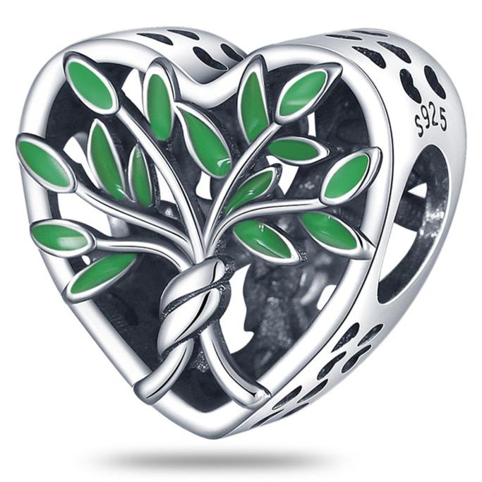💎 Ten srebrny wisiorek w kształcie serca z motywem drzewa życia to symbol miłości rodzinnej i silnej więzi między pokoleniami. Zielone szkliwo na liściach nadaje koralikowi niepowtarzalny akcent natury i harmonii, który przypadnie do gustu wszystkim miłośnikom naturalnych motywów.