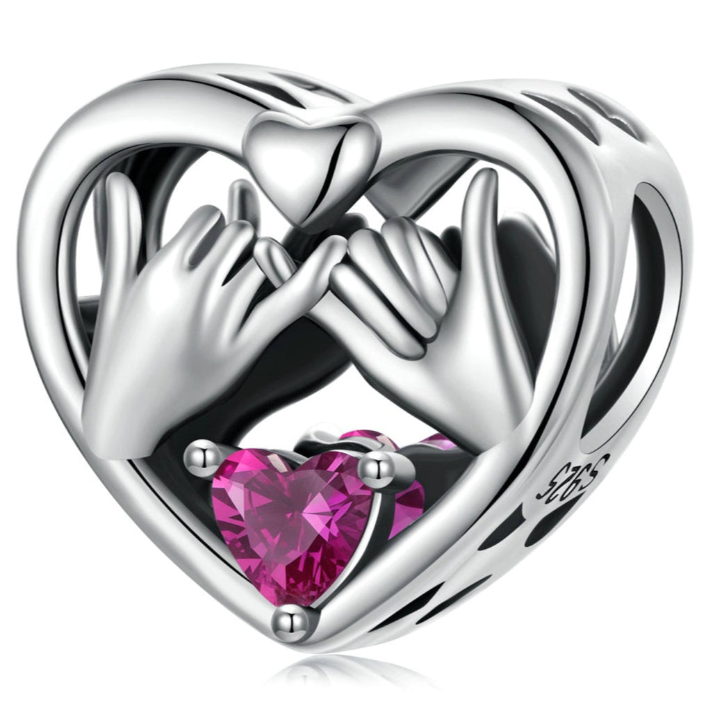 Symboliczna spinka na mały palec, która symbolizuje obietnicę, zaufanie i nierozerwalną przyjaźń, została uchwycona w tym wyjątkowym wisiorku w kształcie serca. Dwa splecione palce tworzą gest „pinky promise”, uzupełniony różowym cyrkoniem w kształcie serca, który błyszczy jako dowód prawdziwej sympatii.
