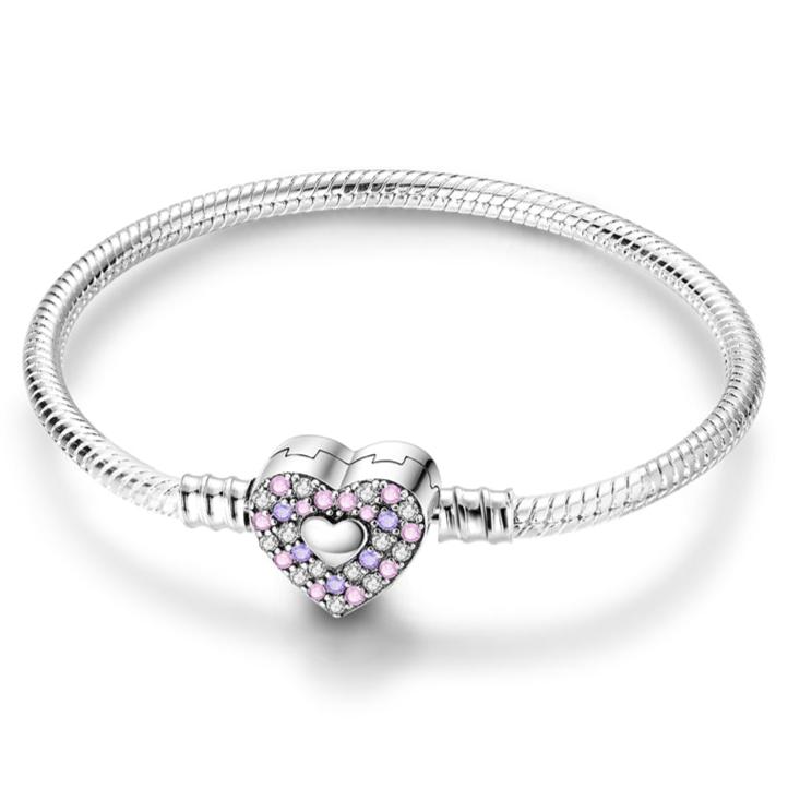 Tento nádherný strieborný náramok „Srdce lásky“ je dokonalým vyjadrením jemnosti a elegancie. Uzáver v tvare srdca je ozdobený jemnými ružovými a fialovými zirkónmi, ktoré dodávajú náramku jedinečný vzhľad a štýl. Tento náramok sa stane krásnym doplnkom k akémukoľvek outfitu a bude vám pripomínať blízkosť a dôležitosť lásky. Je ideálnym darčekom pre každého, kto oceňuje vkusné šperky s významom a hĺbkou.