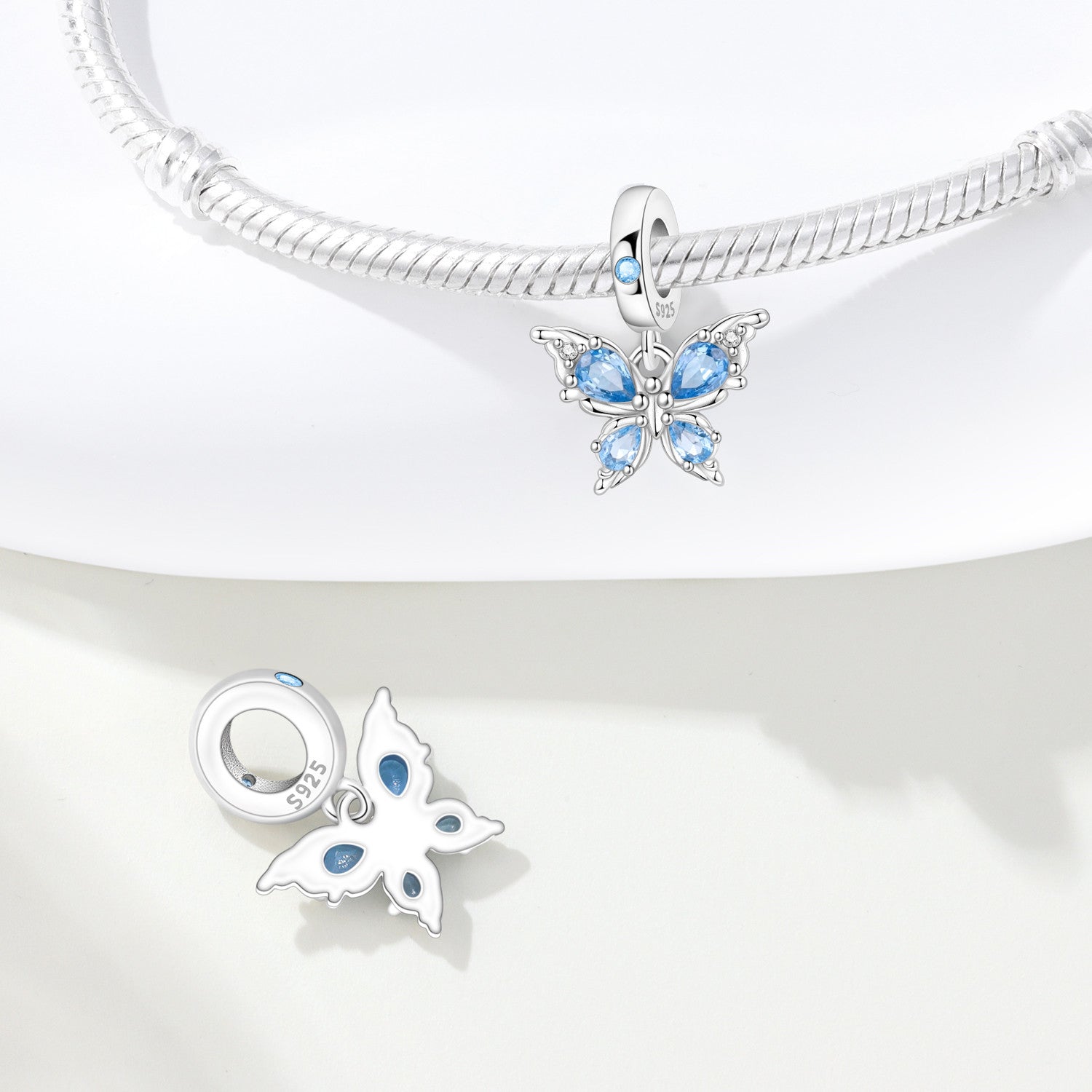 Elegantný prívesok v tvare motýľa s nádhernými modrými krištáľmi dodá vášmu náramku jemnosť a žiarivý akcent. Precízne brúsené kamienky vytvárajú efekt svetla a pohybu, vďaka čomu pôsobí motýľ živým a očarujúcim dojmom. Ideálny doplnok pre ženy, ktoré milujú jemný, ale výrazný štýl.