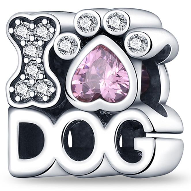 💎 Tento jedinečný prívesok "I ♥ DOG" je dokonalým doplnkom pre každého milovníka psíkov. Jemné detaily s ružovým srdiečkom a trblietavými zirkónmi v tvare kostičky robia z tohto prívesku krásny symbol oddanosti a lásky k vášmu štvornohému priateľovi.