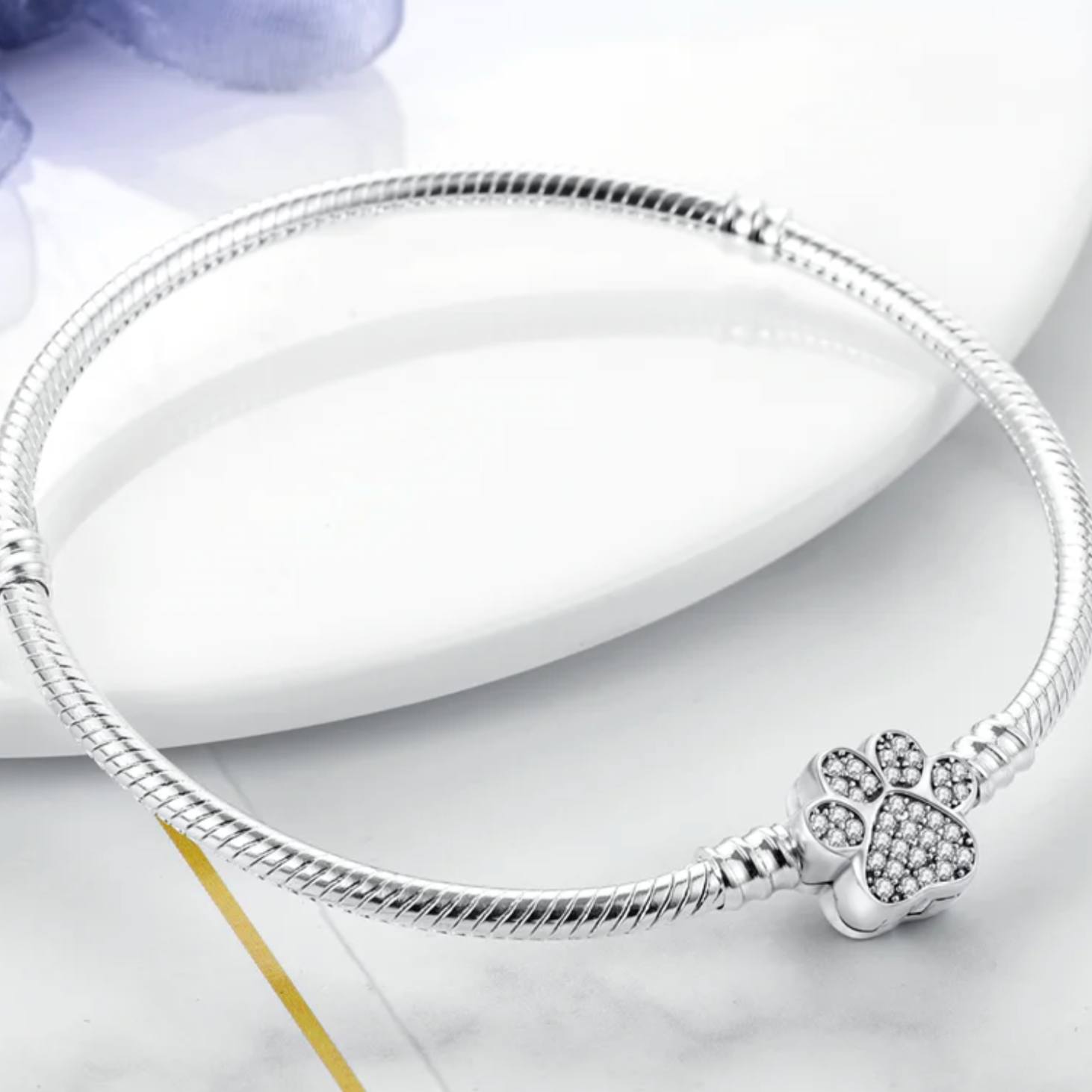 Vyrobený z vysokokvalitného striebra, každý detail náramku sa vyznačuje neprekonateľnou kvalitou a rafinovaným dizajnom. Spona v tvare labky žiari vďaka krištáľovo čistým zirkónom, dodávajúc vášmu vzhľadu osobitú eleganciu.