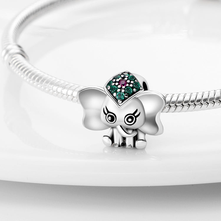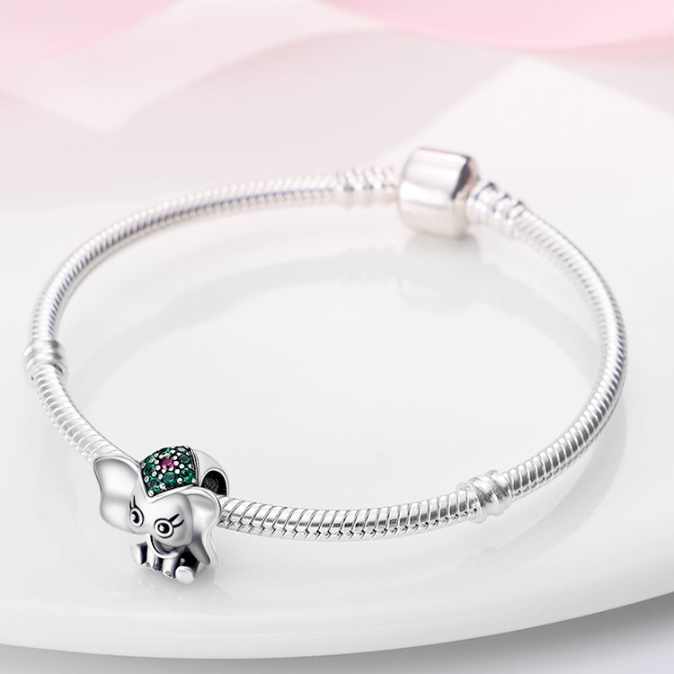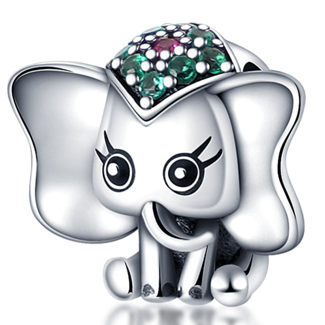Dizajn sloníka je hravý a zároveň elegantný – veľké ušká a veselé očká mu dodávajú priateľský výraz. Jeho čelenka je zdobená zelenými a ružovými kryštálmi, ktoré šperku pridávajú nádych luxusu a originality. Vyrobená zo striebra 925, táto korálka je ideálnym doplnkom na každý náramok.