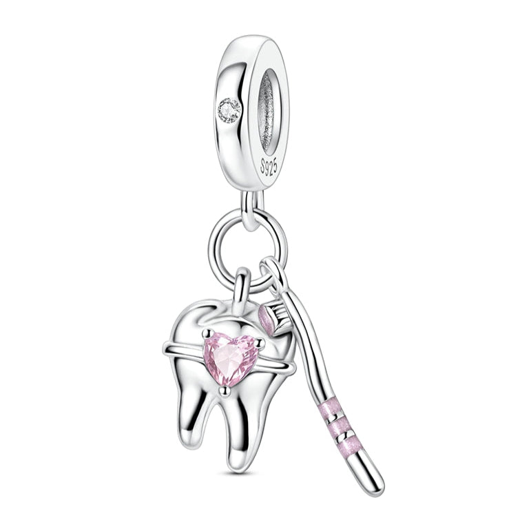 Originálny prívesok pre tých, ktorí majú úsmev v srdci – alebo sa starajú o úsmevy druhých. Strieborný zúbok so srdiečkom z ružového zirkónu je doplnený miniatúrnou kefkou s ružovým smaltom. Nežný a hravý šperk, ideálny ako darček pre zubárov, dentálnych hygienikov alebo milovníkov úsmevu.