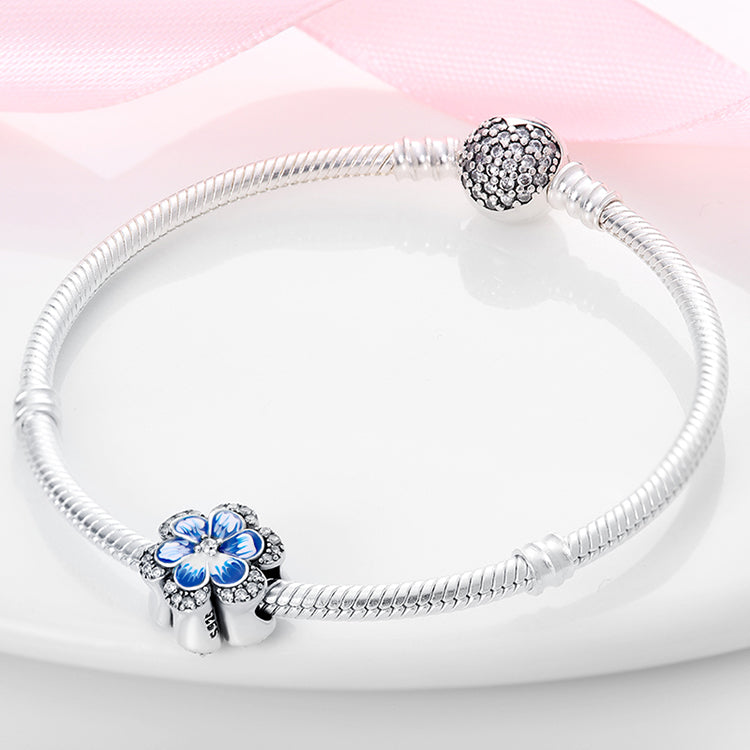 Tento výnimočný prívesok v tvare rozkvitnutej kvetiny vyniká sýto modrým smaltom a precíznou ručnou prácou. Okvetné lístky sú lemované drobnými čírymi kamienkami, ktoré šperku dodávajú iskrivý nádych luxusu. Symbol nežnosti, elegancie a krásy prírody v jednom detaile.