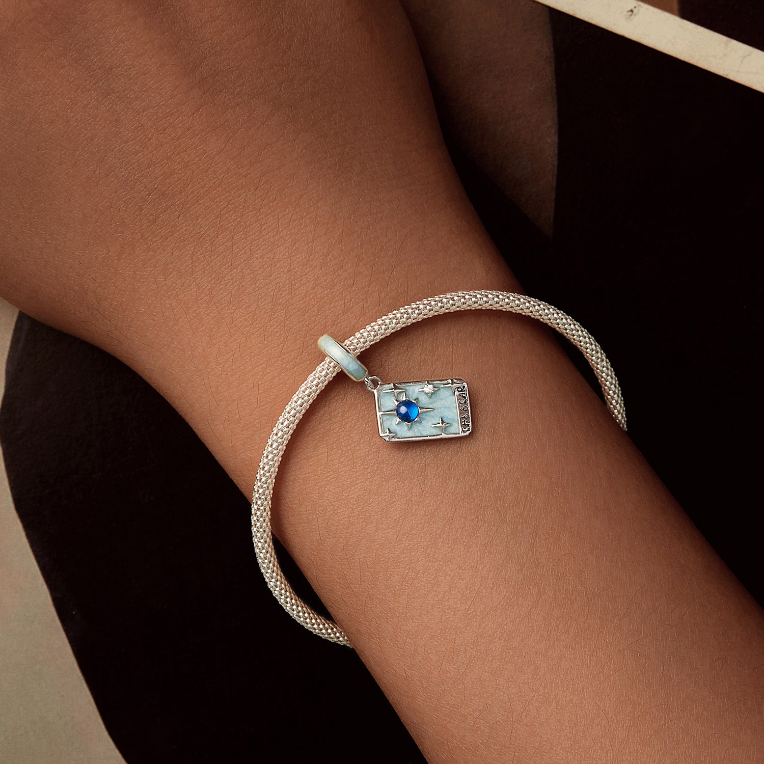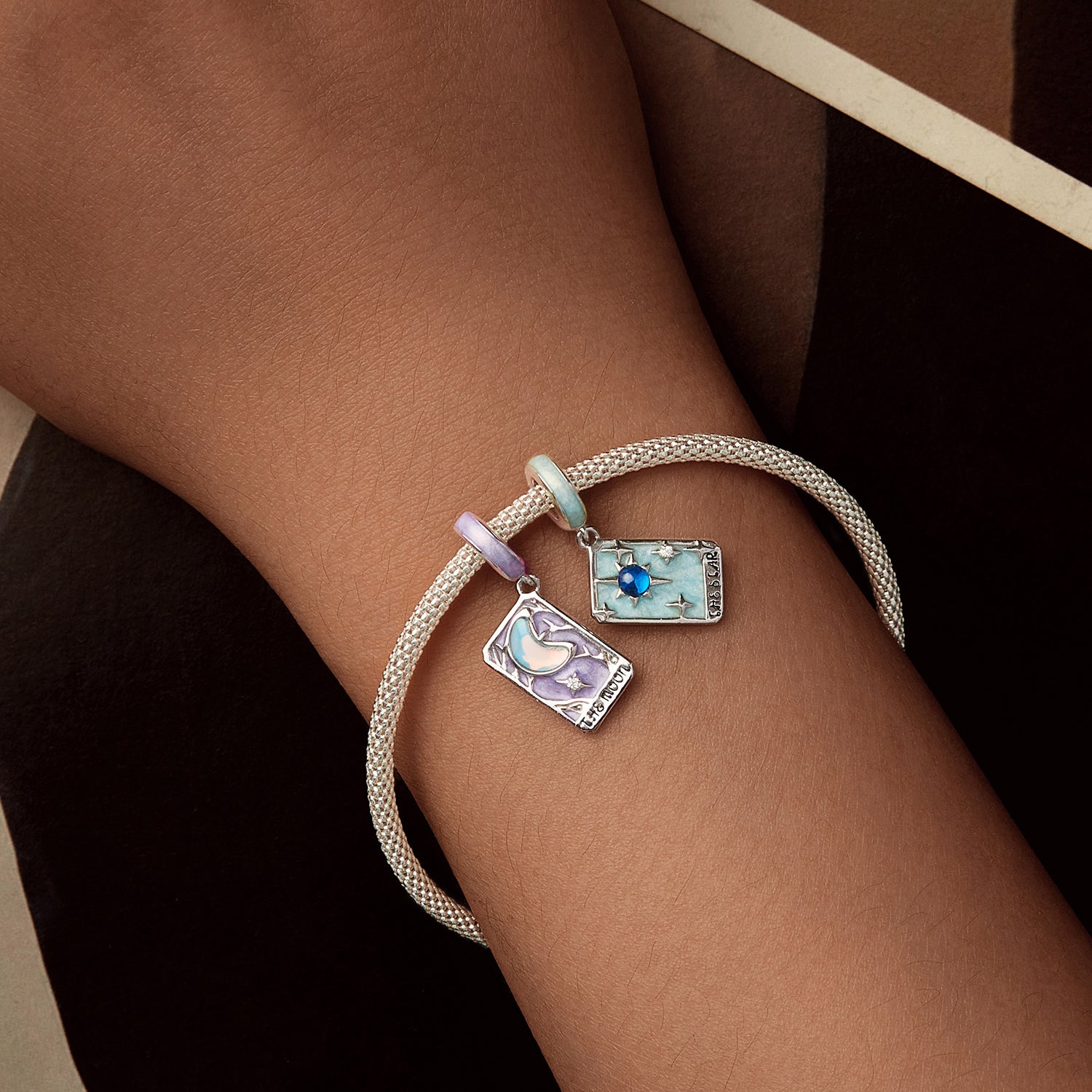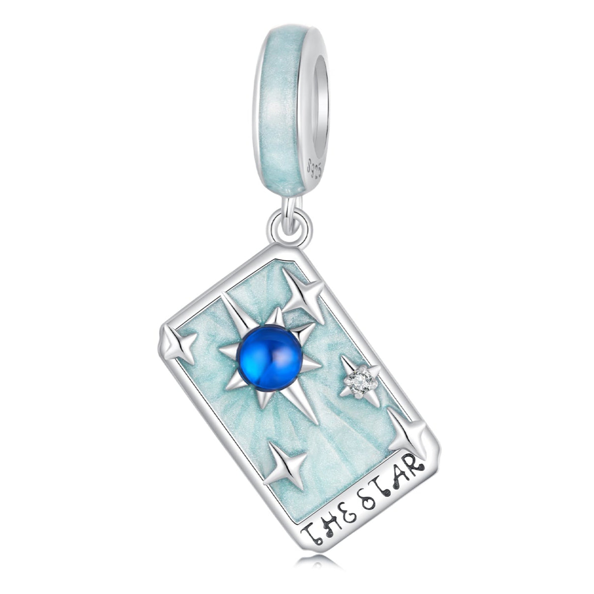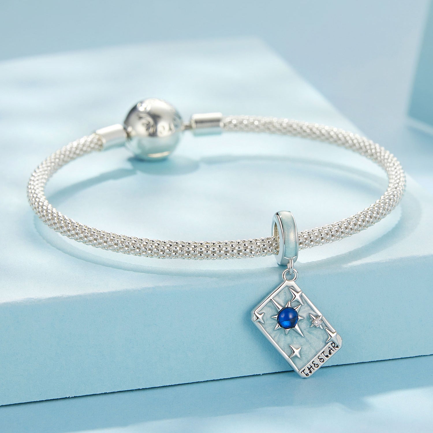Nádherný strieborný prívesok inšpirovaný tarotovou kartou „Hviezda“ symbolizuje nádej, inšpiráciu a duchovné vedenie. Jemná modrá smaltovaná povrchová úprava a trblietavé detaily vytvárajú magickú atmosféru, zatiaľ čo centrálny modrý kameň dodáva šperku hĺbku a eleganciu. Prívesok je vyrobený zo striebra 925 a je dokonalým doplnkom pre tých, ktorí veria v osud a chcú nosiť so sebou pozitívnu energiu.