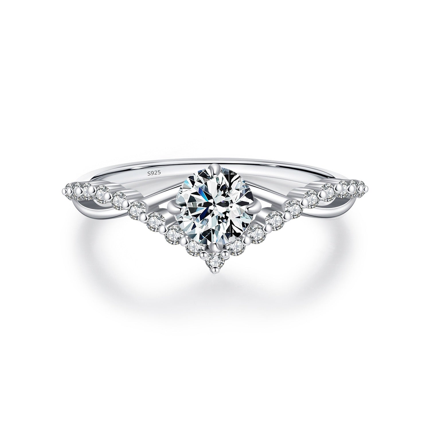 Elegantný strieborný prsteň s dominantným centrálnym kamienkom doplnený radom menších žiarivých kamienkov, ktoré vytvárajú jemný a luxusný vzhľad. Prepracovaný dizajn s ladnými líniami pôsobí romanticky a sofistikovane, vďaka čomu je ideálny ako darček alebo výrazný doplnok na špeciálne príležitosti aj každodenné nosenie. Prsteň je vyrobený zo striebra, čo zaručuje krásny lesk a pohodlné nosenie.