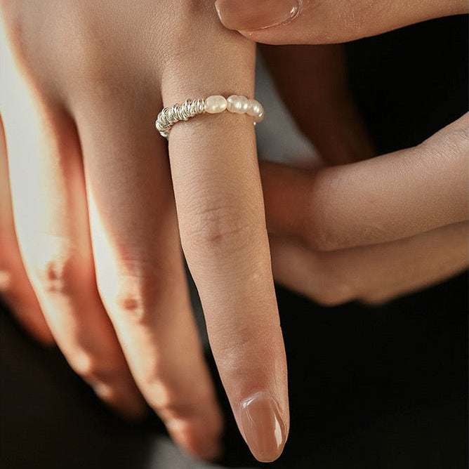 Jemný a elegantný strieborný prsteň s perlami, ktorý pôsobí nežne a nadčasovo. Vyrobený zo striebra a navrhnutý v jednoduchom štýle, ľahko sa kombinuje s každodenným aj slávnostným outfitom a dodáva rukám prirodzenú eleganciu. Ideálny ako darček alebo štýlový doplnok pre milovníčky minimalistických šperkov.