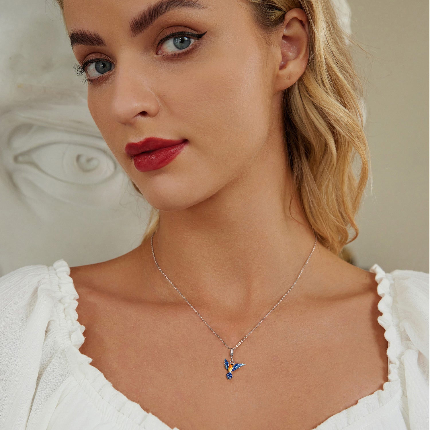 Stříbrný přívěsek Letící pták s barevnou glazurou