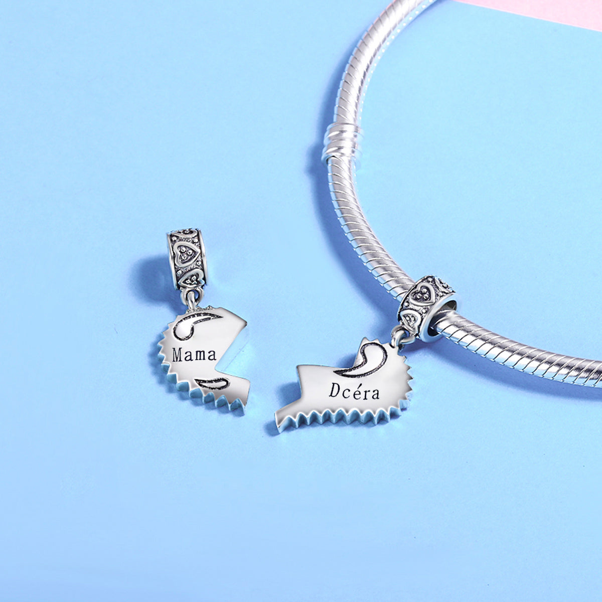 Emotívny prívesok „Mama & Dcéra“ je krásnym symbolom nerozdeliteľného puta medzi mamou a dcérou. Dve polovice srdca sa dokonale dopĺňajú – rovnako ako váš vzťah. Každá časť je určená pre jednu z vás, aby ste si mohli nosiť kúsok toho druhého vždy so sebou.